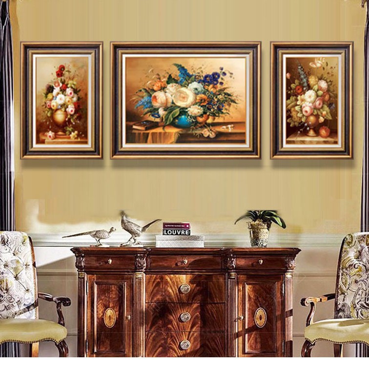 ヨーロッパ風の横断幕の客間装飾画のアメリカ式のレストランは簡単で美しい寝室の花卉の壁画の油絵を掛けて代行します。