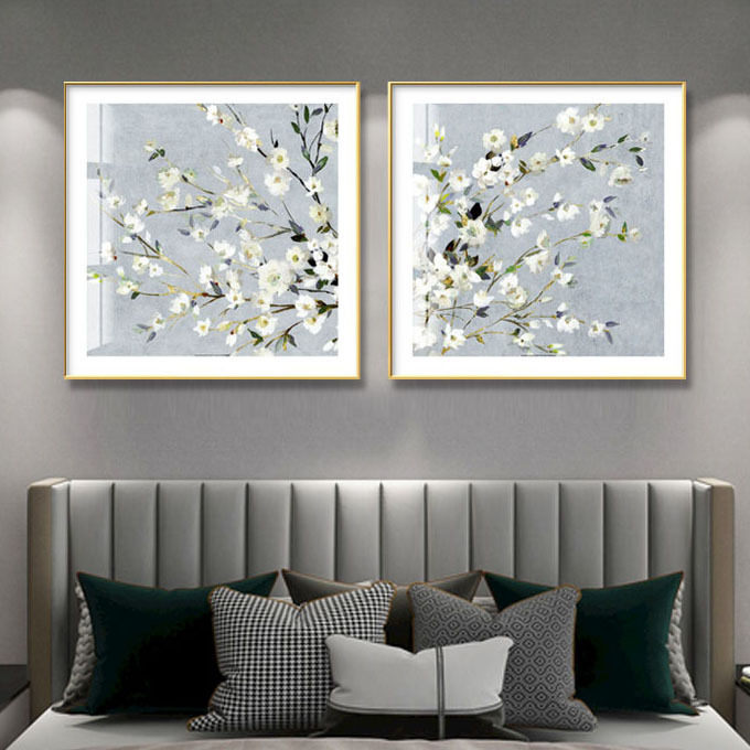 メーカー直販クリーム風客間装飾画現代花卉玄関掛け画寝室ソファー背景着地壁画