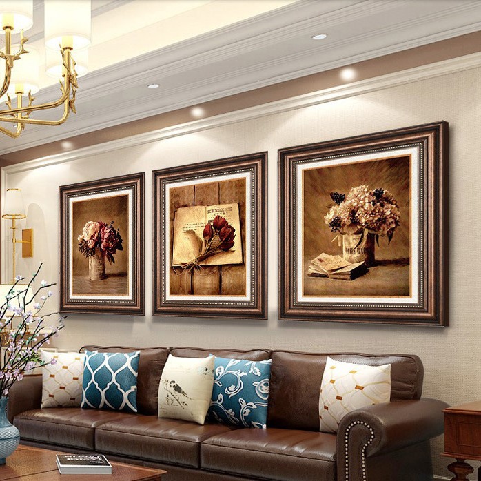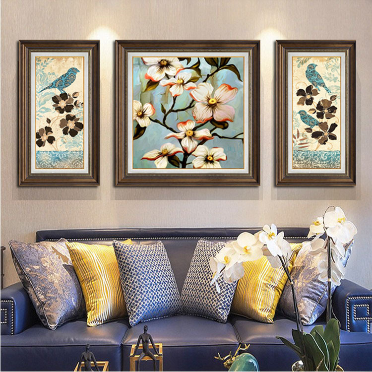 アメリカ式客間装飾画ヨーロッパ風壁画ソファー背景壁三連画レトロ掛け画壁画発財樹油絵