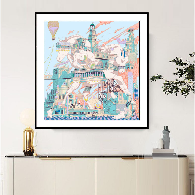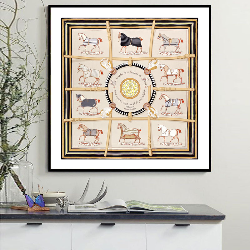 エルメスニューヨーク巴特公園シルクタオル装飾画現代シンプル客間背景壁飛馬城掛け画