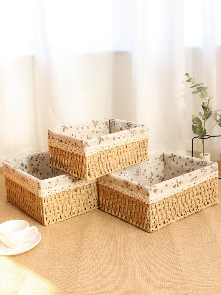 バスケットを編んで収納するお茶のリビングルームの雑物服化粧品収納ボックスは藤編みの収納ボックスのデスクトップ収納ボックスに似せています。