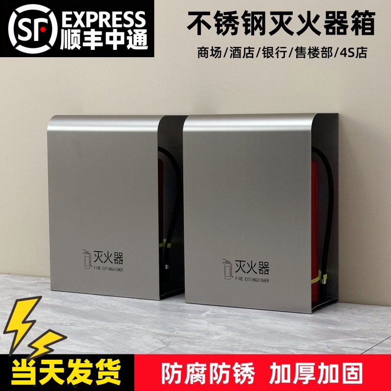 ハイエンド円弧ステンレス銀色の糸を厚くして消火器箱を5キロ2本入れてデパートの展示会に箱を収納する