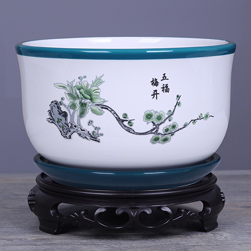 陶磁器の植木鉢の大口径の中国式の古典的なベランダのデスクトップの鉢植えの室内外の金持ちになる木の専用の鉢の特価の在庫一掃