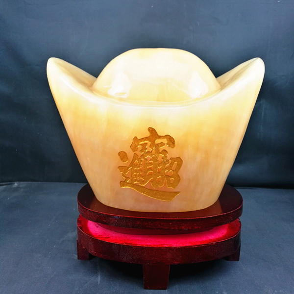 天然米黄玉元宝置物玉金元宝大宝玉家具オフィス置物大サイズ