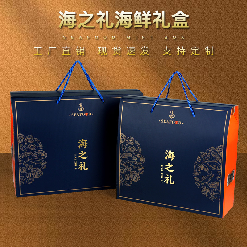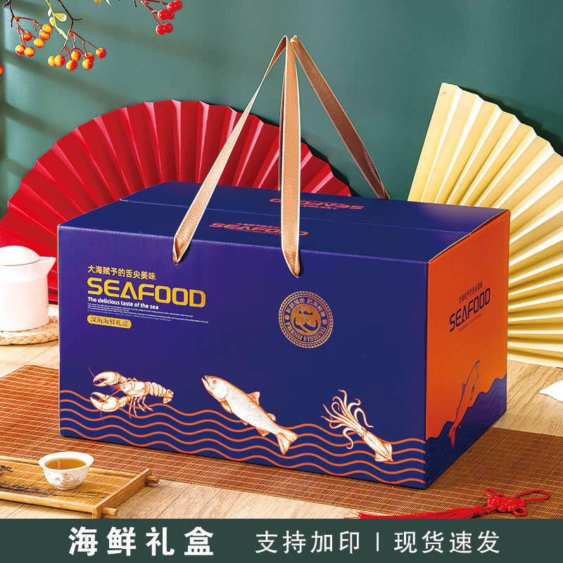 海鮮包装箱中秋節年物大ギフトバッグ水海産物ギフトボックス乾物手提げ箱段ボール箱ギフトボックス