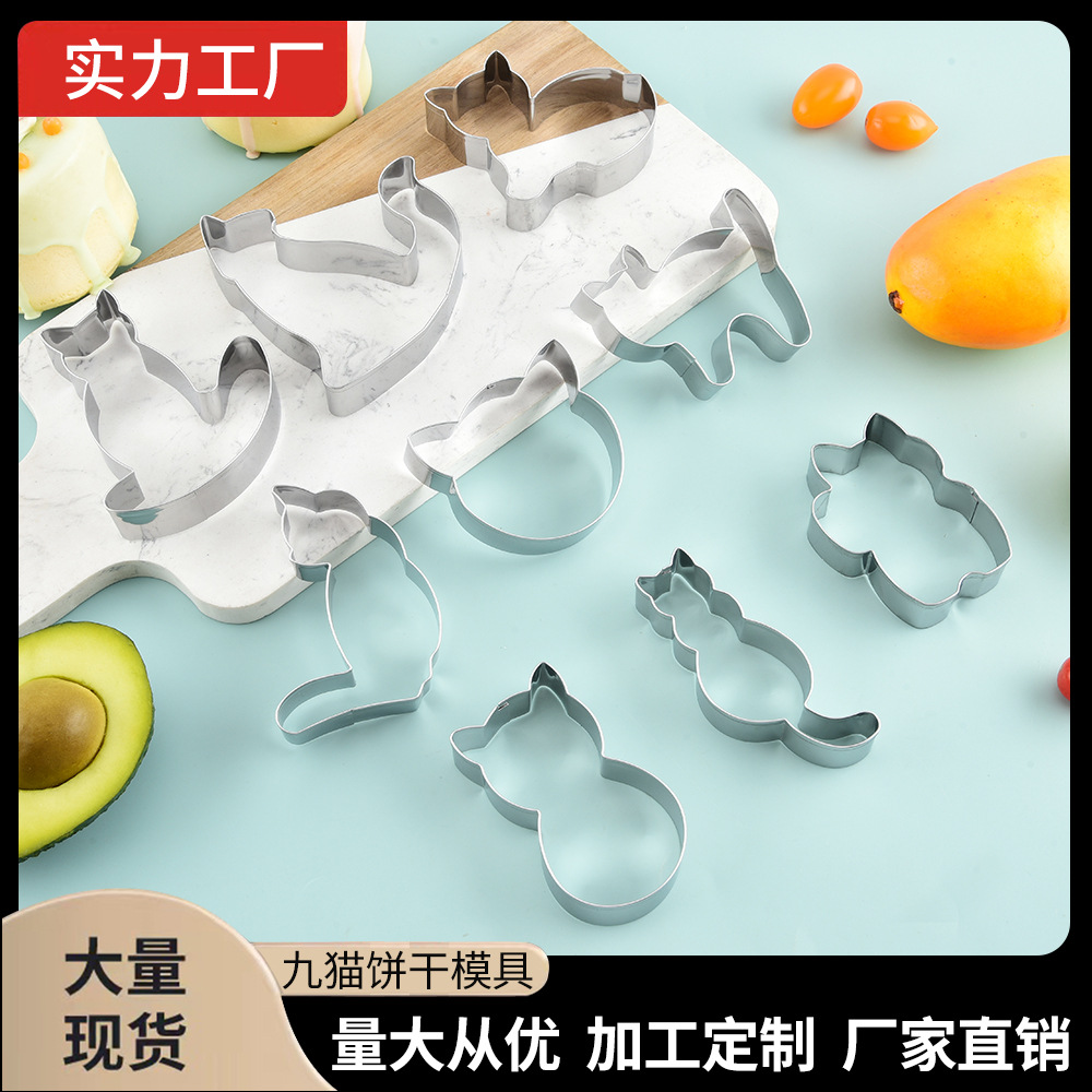 クリエイティブステンレス鋼 9 猫クッキー型セット立体ケーキ切断型フォンダン型 DIY ベーキングツール