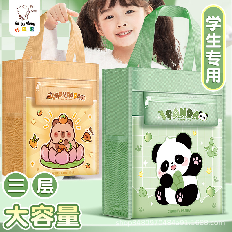 カバ熊学生パンダ手提げ袋キャンバスバッグ中学生文房具塾袋防水大容量厚手入学