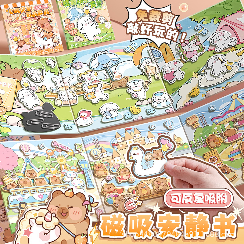 カバ熊磁気吸引静かな本カード通奥颜値無裁断無貼り児童diy手作り益智高颜値