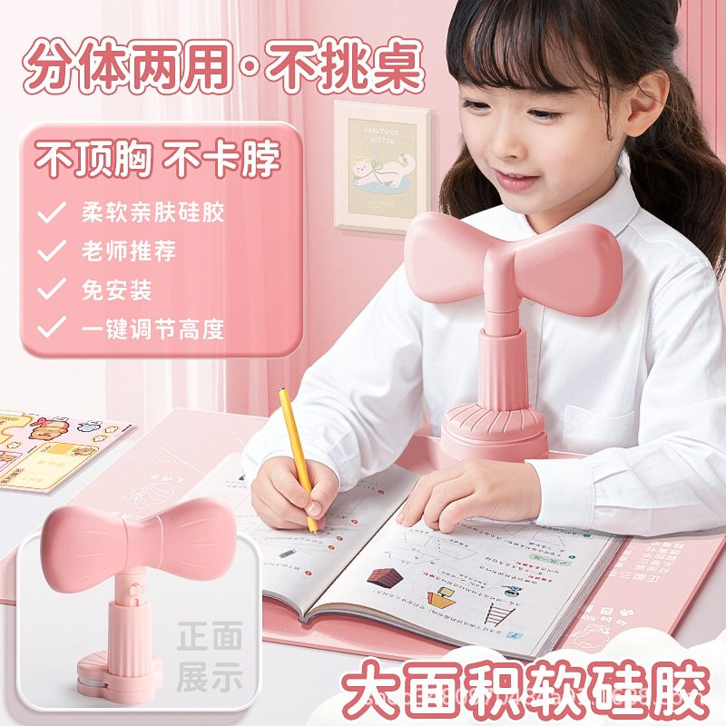 ちくしょう熊の子供の小学生は頭を下げて座っている姿勢の矯正器を防ぎます。