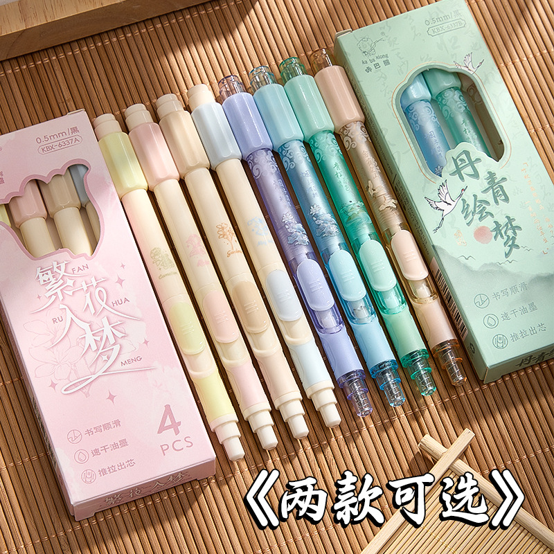 押しペン0.5速乾炭素黒筆学生用押圧式学生中性筆ブラシ提筆高颜値セット