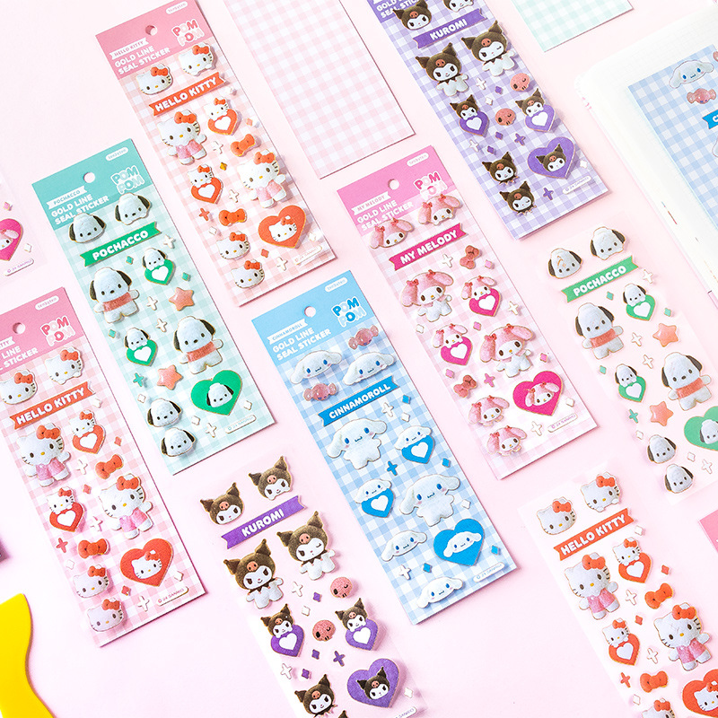 日韓アニメかわいいサンリオクロミ金辺シール創意子供装飾貼り絵手帳素材卸売り