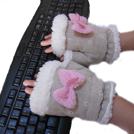 Usb保温手袋半指usb加熱綿手袋アトミス田園風蝶結び