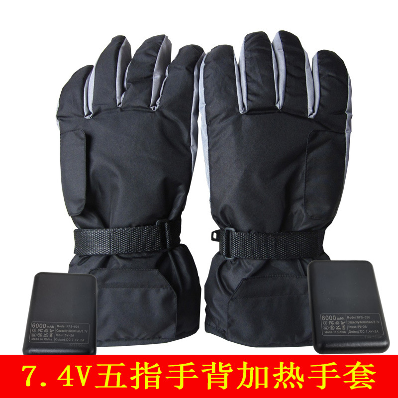 7.4V充電式電熱手袋、温度調節可能な電熱手袋、5本指手の甲を温める冬用発熱手袋、スキー用