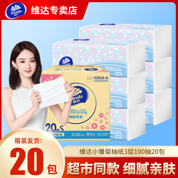 Vinda 細くて丈夫で柔らかい 3 層 100 パック 20 パックフルボックスの家庭用トイレットペーパー、フェイシャルティッシュ、ナプキン、ティッシュペーパー