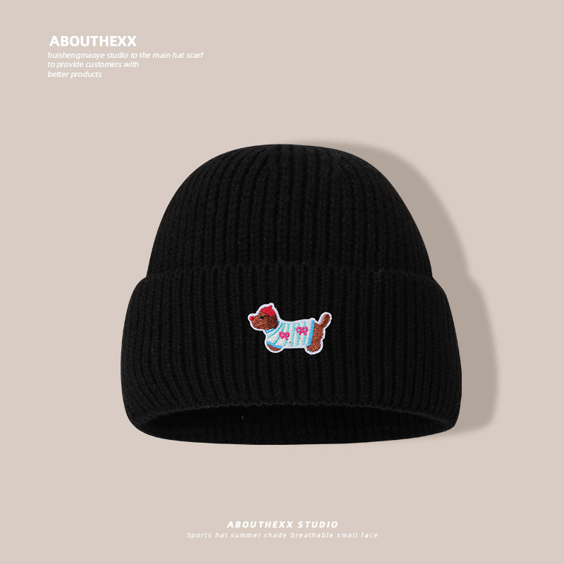 秋冬の新型の帽子の女性の子犬は布のニットの帽子を貼ります。