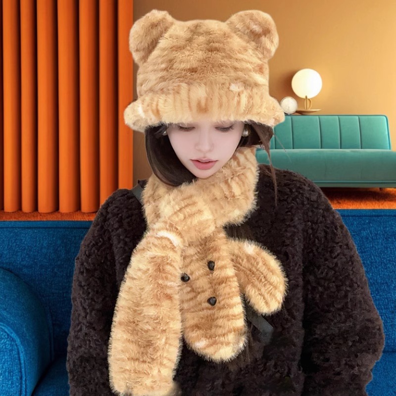 アップグレード版の熊のマフラーの帽子は一体二点セットです。