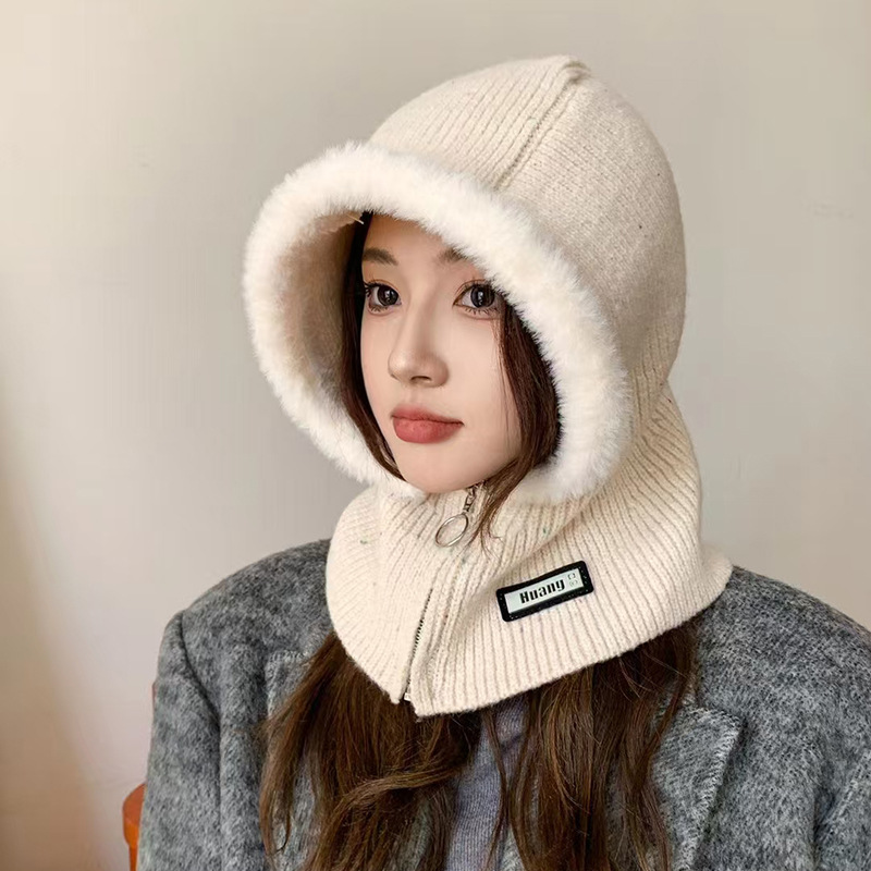 韓国系バラクラク帽子女性秋冬保温帽子マフラー一体耳保護ニット毛糸帽子潮