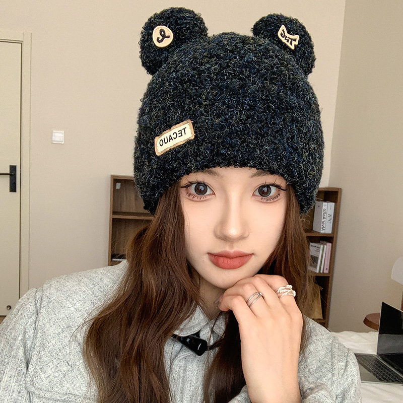 Insかわいい子犬ニット帽子供秋冬学生防寒保温ニット帽カップルフード