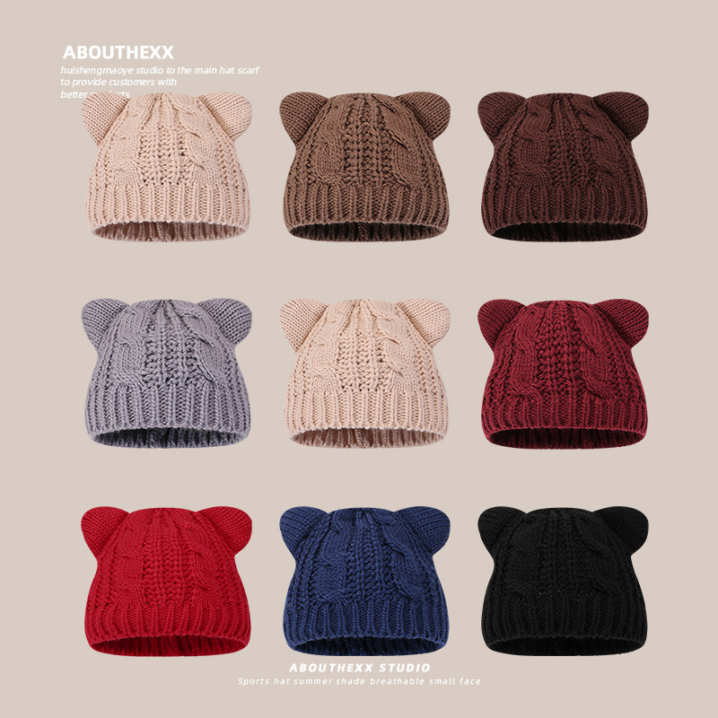 国境を越えた対外貿易猫耳帽子女性秋冬新型かわいいシンプルなニット帽