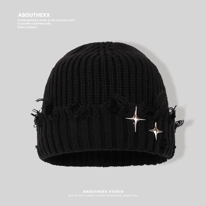 国境を越えた対外貿易の破れた星の帽子の子供の冬の新型ニット帽の街頭の屋外の保温カバーの毛糸の冷たい帽子の男