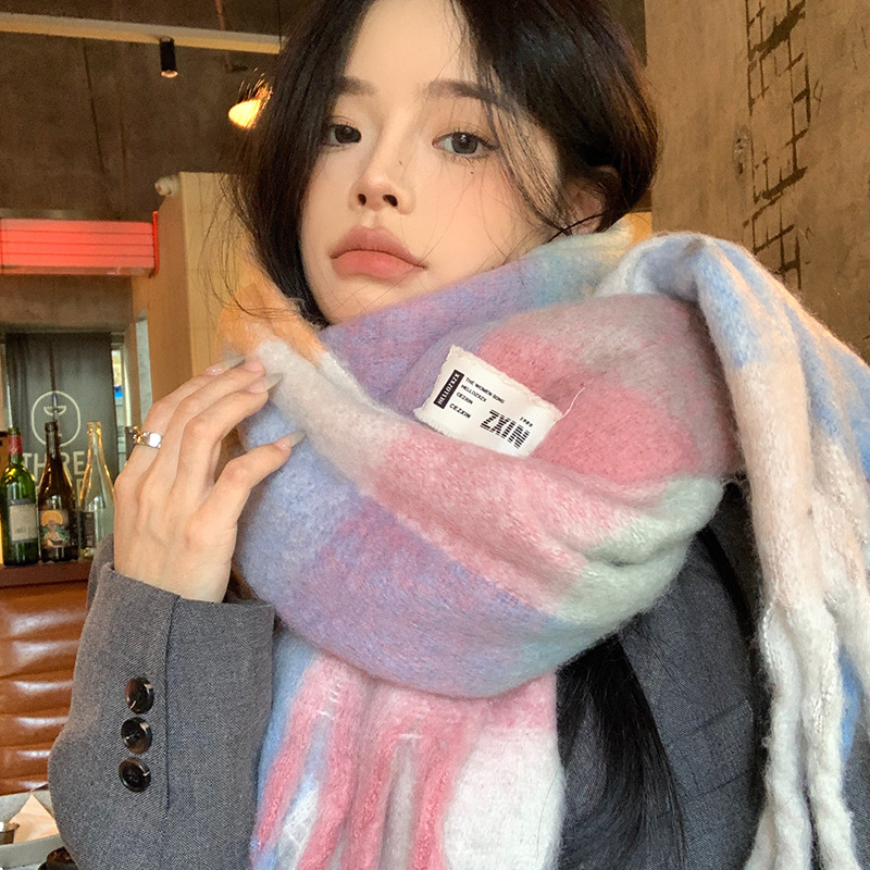 ドーパミン虹色合わせマフラー女性秋冬新作保温高級雰囲気感ストール馬海毛厚手マフラー