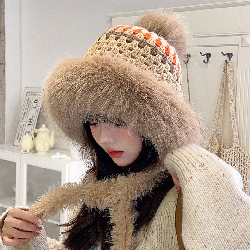 秋冬の毛の絨毛の帽子の女性の百合の保温の毛糸の帽子の屋外は顔の小さい防寒の雷鋒の帽子の耳のニットの帽子を現します。