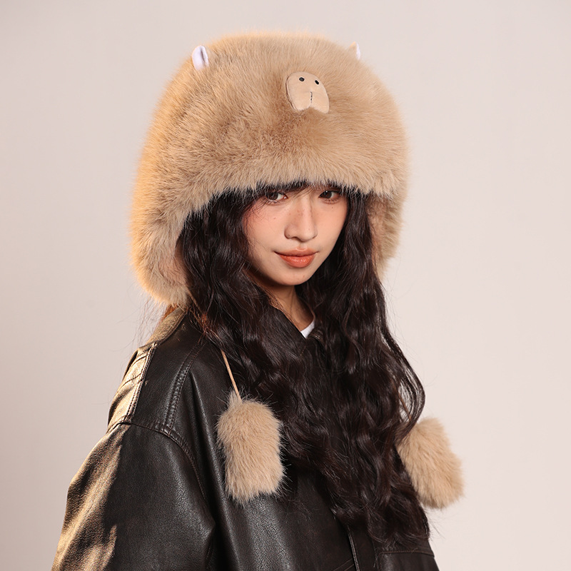 カピバラの甘くて可愛い毛の帽子の子供の大きい頭の周りの漫画の帽子の防寒の保温の耳の雷の前線の帽子