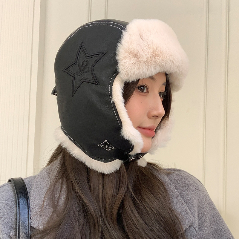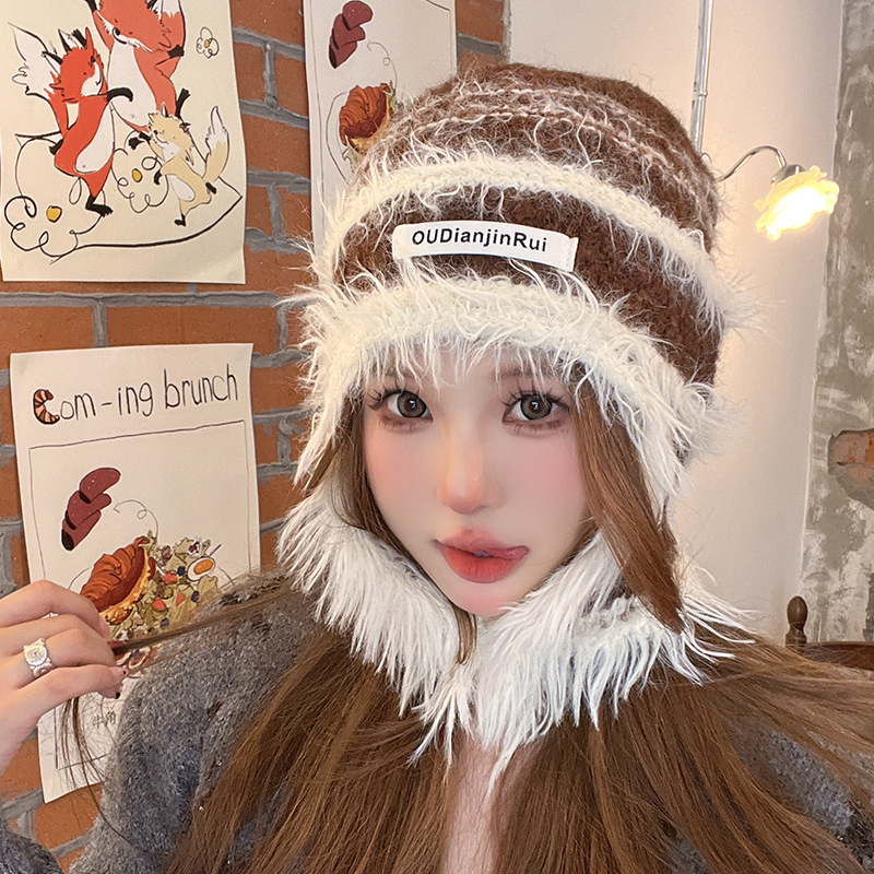 ぬいぐるみの雷鋒帽子の女性は冬にベルベットをつけてニットの毛糸帽を厚くして、顔の小さい自転車で保温して耳の帽子を保護します。
