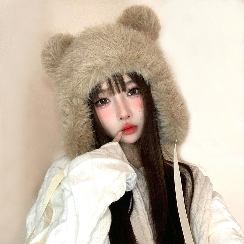 冬の厚いかわいいイヤホンの熊の帽子のマフラーの一体のぬいぐるみの耳の雷の前線の帽子の自転車の防寒の帽子
