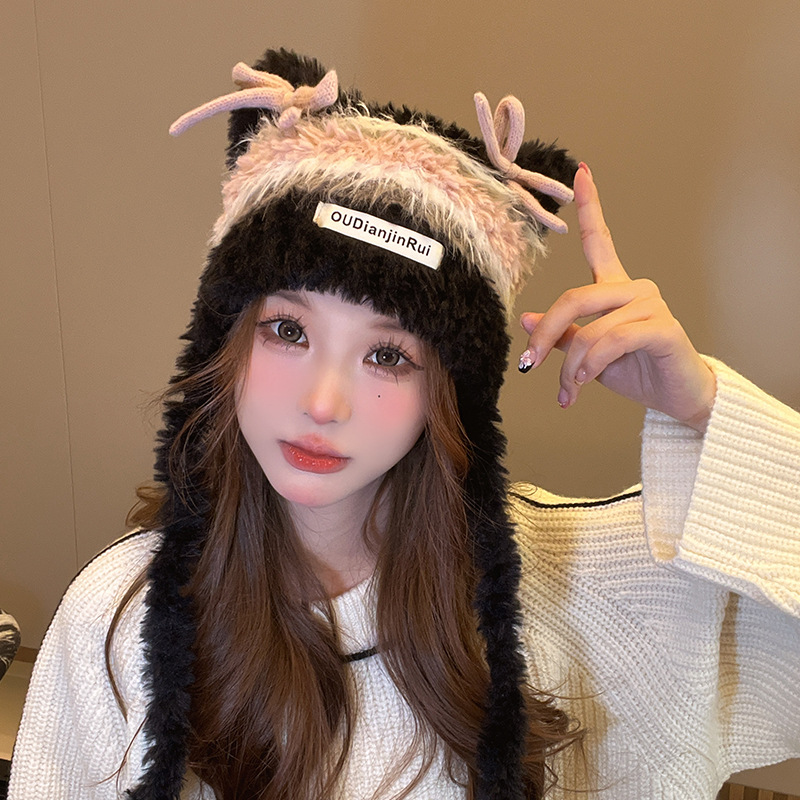 甘い蝶結びの毛の帽子の子供の秋冬の新型の保温の毛の帽子の屋外の百合の耳のカバーの頭のニットの帽子