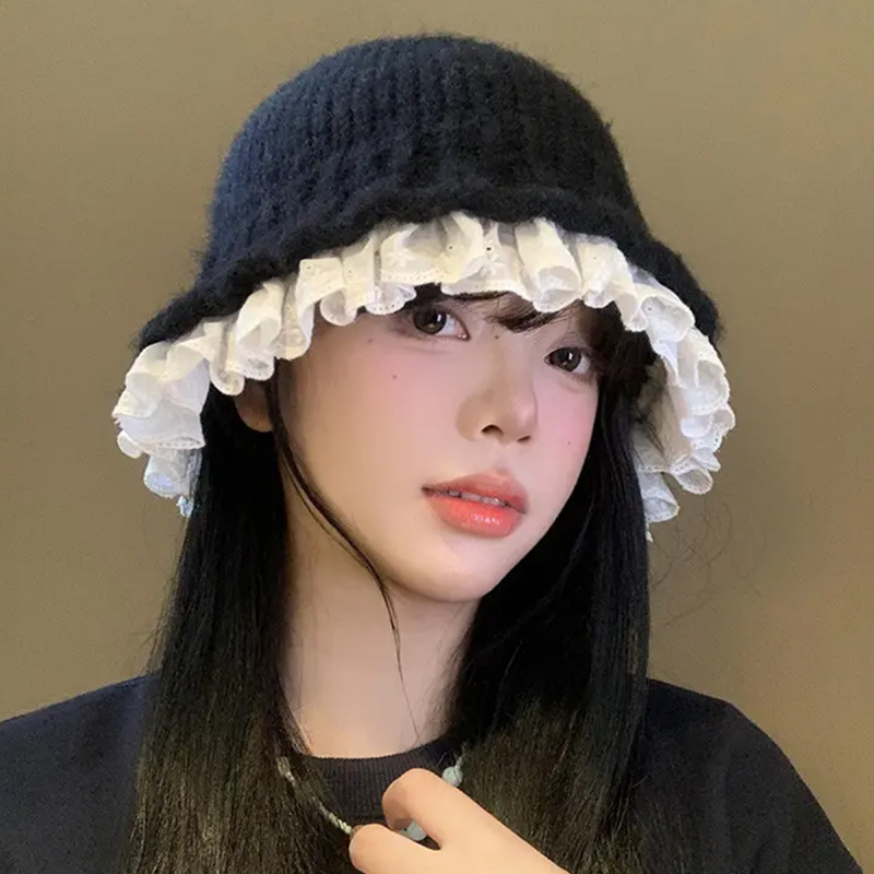 レースの縁の帽子の子供は秋冬に漁師の帽子を編みます。