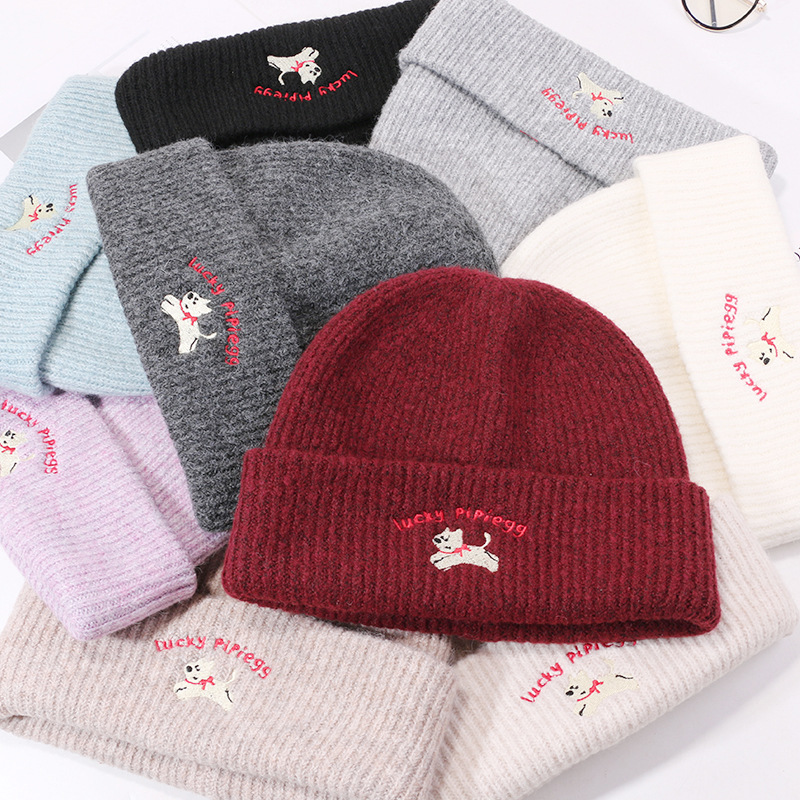 暖かいモチモチの子犬の百合刺繍のゆったりした大きい版の帽子の女性のニットの毛糸の帽子は顔の小さい冷たい帽子の秋冬の新型を現します。