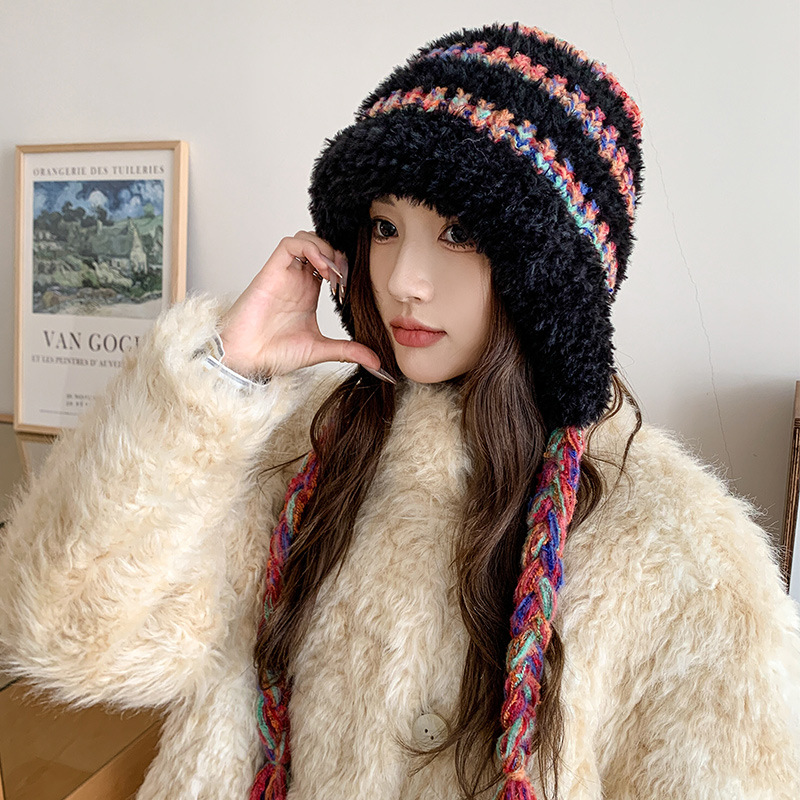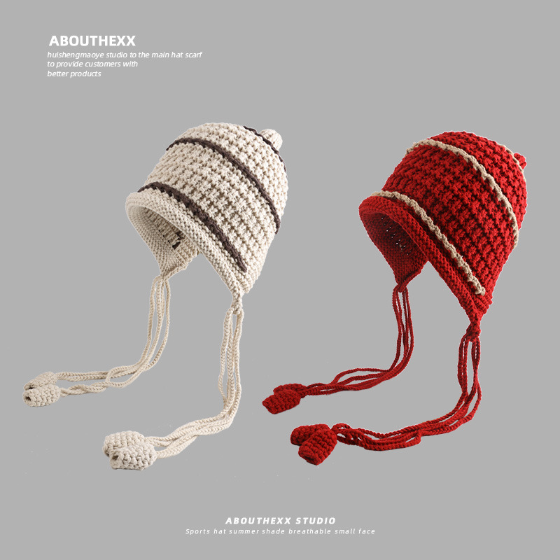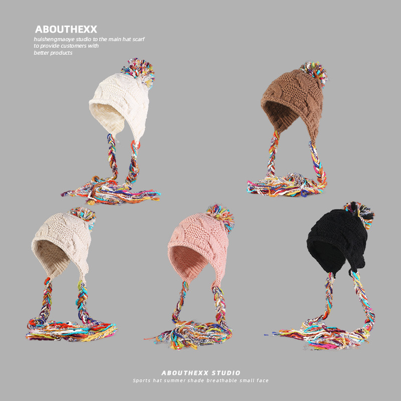 日本系ネット赤流蘇帽子女性秋冬民族風甘美お下げ雷鋒帽耳保護包頭ニット毛糸帽