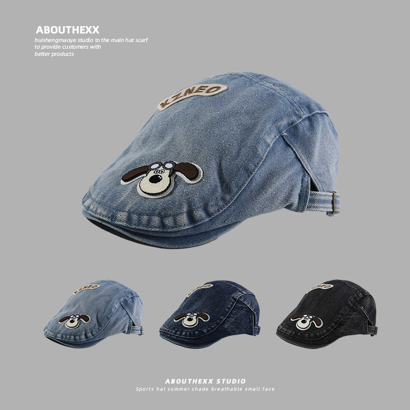 韓国版のレトロな漫画は布のカウボーイの前に入って帽子の子供の夏に水を洗って古いベレーの帽子のレトロな百合の画家の帽子をします。
