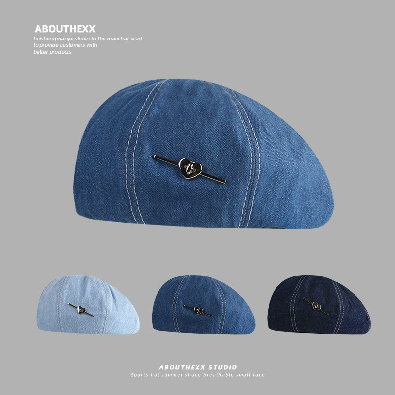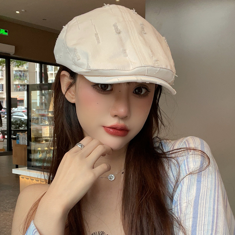 韓国2024新型カウボーイベレー帽女性春秋薄金小衆八角形画家帽英倫復古児童帽
