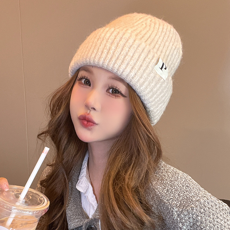 帽子女性秋冬保温Pアルファベット百合ニット帽韓国版ファッション顔小毛糸帽アウトドア耳保護冷
