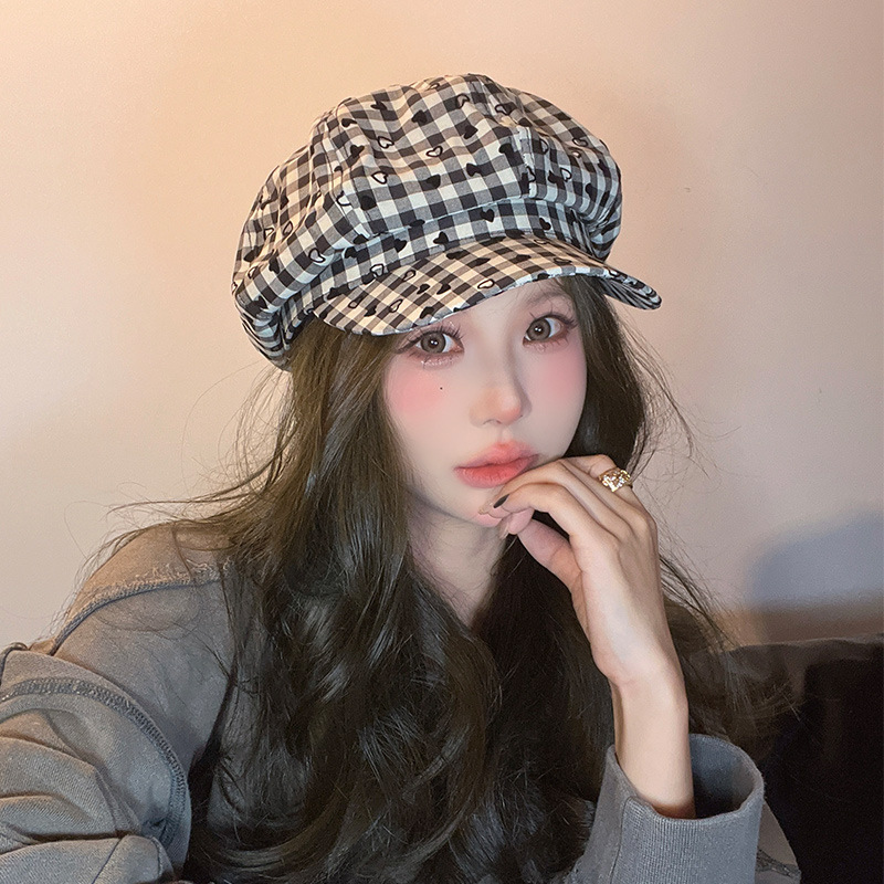 新型の帽子の女性の英倫の復古の文芸の八角の帽子の愛の格子は顔の小さいベレーの帽子を現して旅行します。