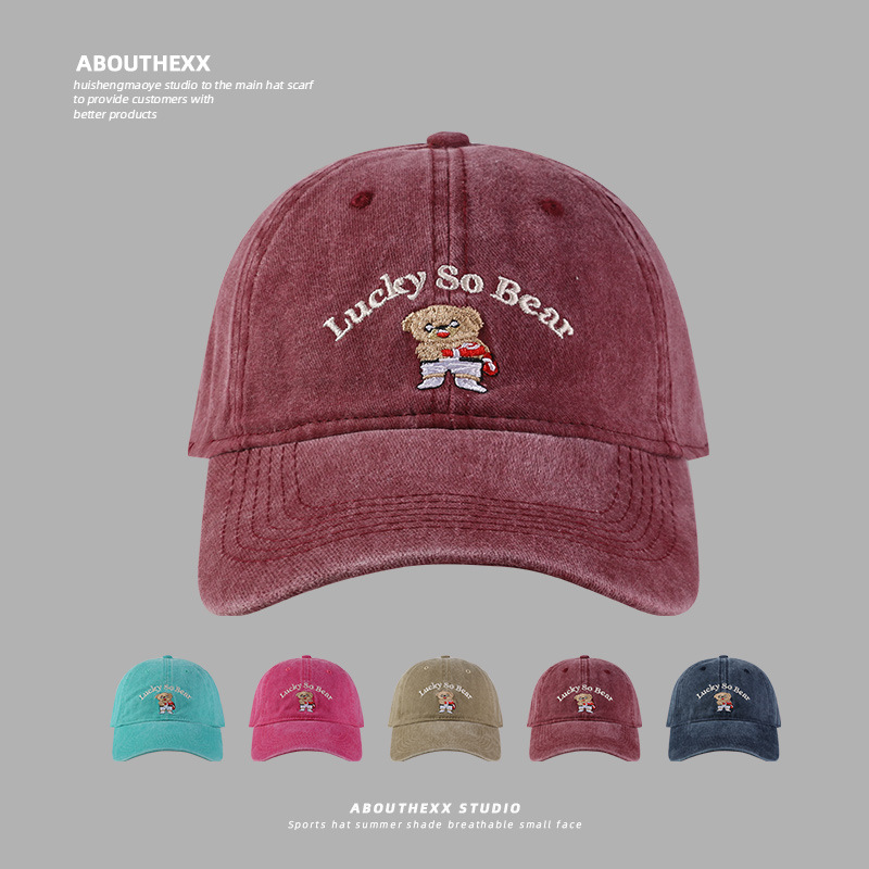 熊の刺繍の野球帽の子供は甘くて、2024春夏の新型のひさしのアヒルの舌の帽子のカップルの男は顔が小さいです。
