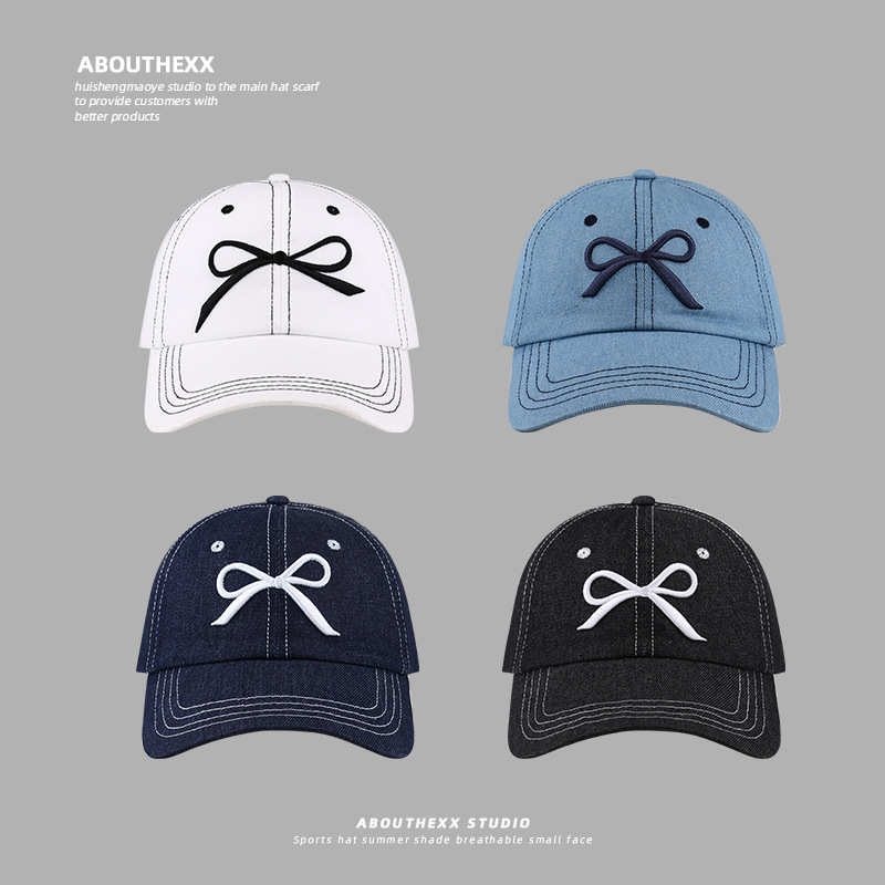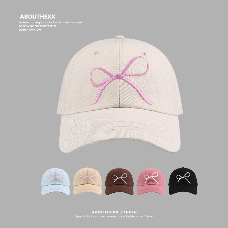 帽子の女性韓国の大衆の設計の蝶結びの野球の帽子のネットの赤いネットの甘美な百合のカウボーイのアヒルの舌の帽子は顔の小潮を現します。