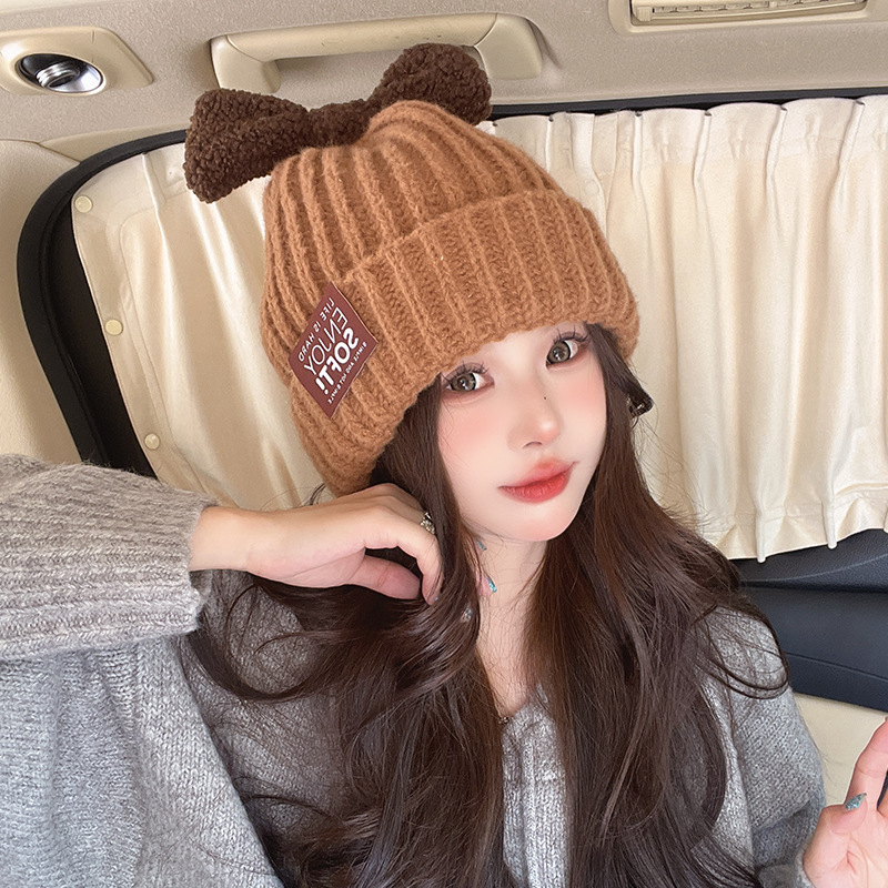 帽子の女性2023新型秋冬熊のぬいぐるみ耳のニット帽