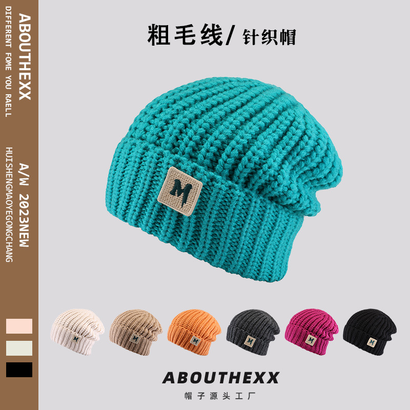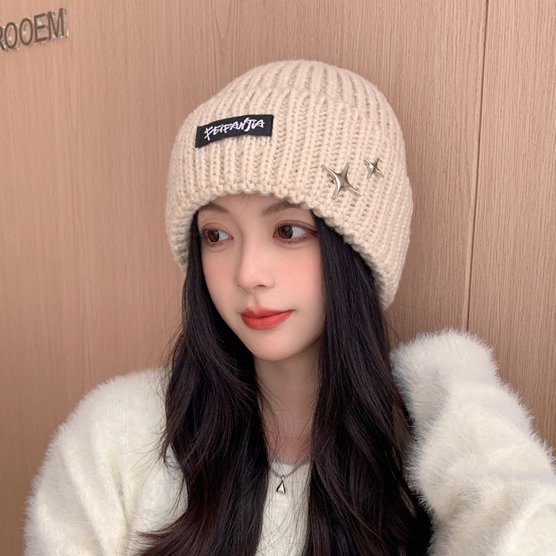 秋冬保温ニット帽子男女街頭百合頭帽子韓国版insファッションm標毛糸帽子