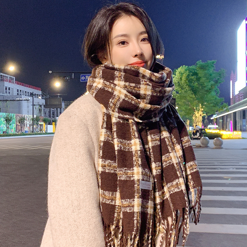 新しい冬の爆発的な格子縞のマフラーの女性の高級感