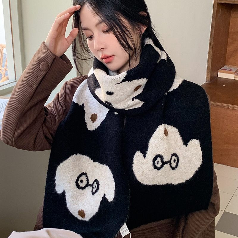 日本の目の子犬の漫画は厚いマフラーの女性を厚くします。