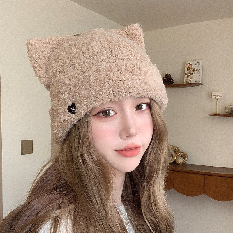 冬の熊の耳のニット帽の女性の韓国版の保温の毛糸の帽子の日本の百合のかわいい冷たい帽子の女性の耳の帽子