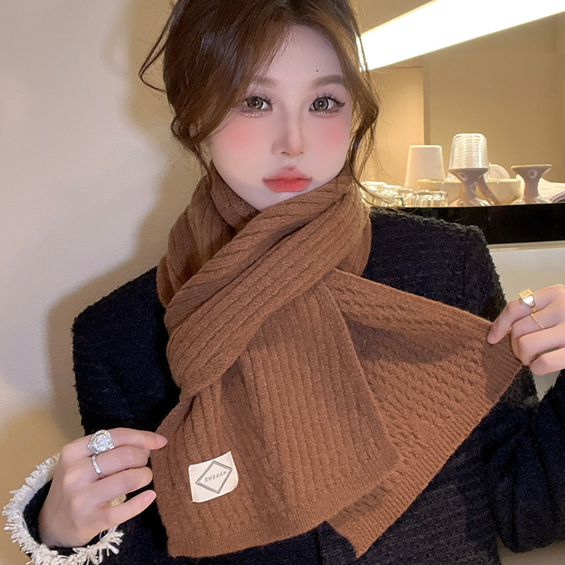 Ins純色毛糸マフラー女性秋冬ファッション百合韓版長型保温マフラー学生潮