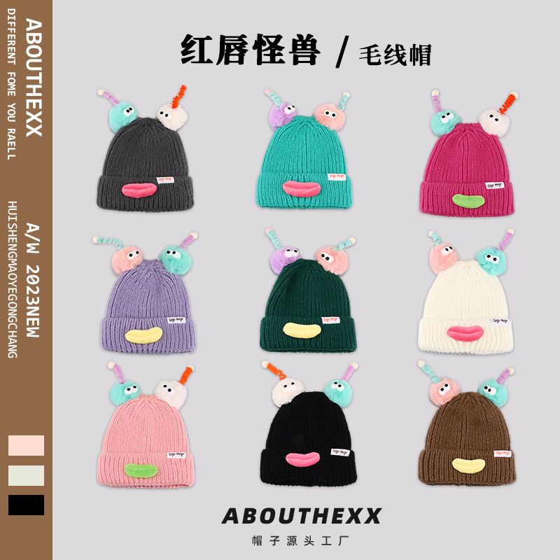 頭の周りがおかしいニット帽かわいいカエルの毛糸帽の女性秋冬保温帽の子供2023新型冷帽