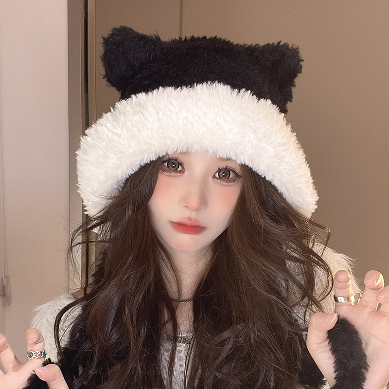 秋冬の甘くてかわいい熊の耳の毛の絨毛の帽子の女性の旅行の保温の大きい頭の周りの耳の帽子の頭の帽子の潮を保護します。