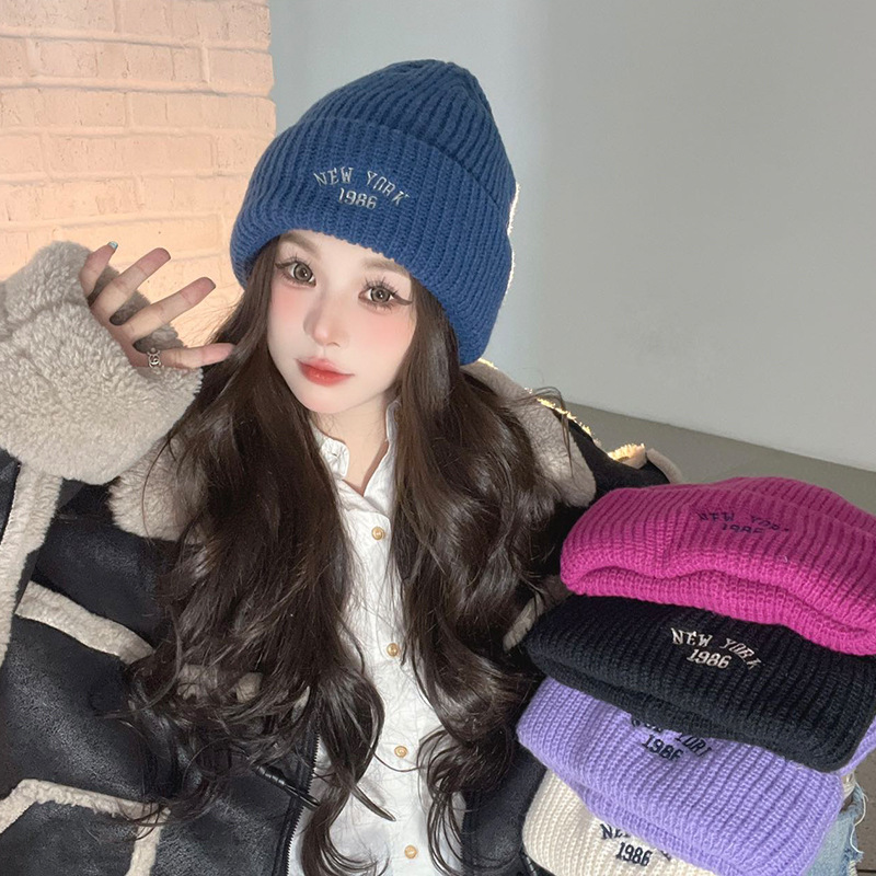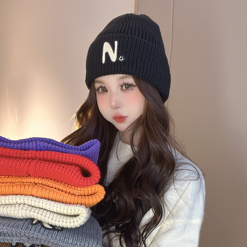 秋冬の新型の帽子の女性の韓国版の百合の保温のニットの帽子ネットの赤い顔の小さいアルファベットの毛糸の帽子は耳の冷たい帽子を保護します。