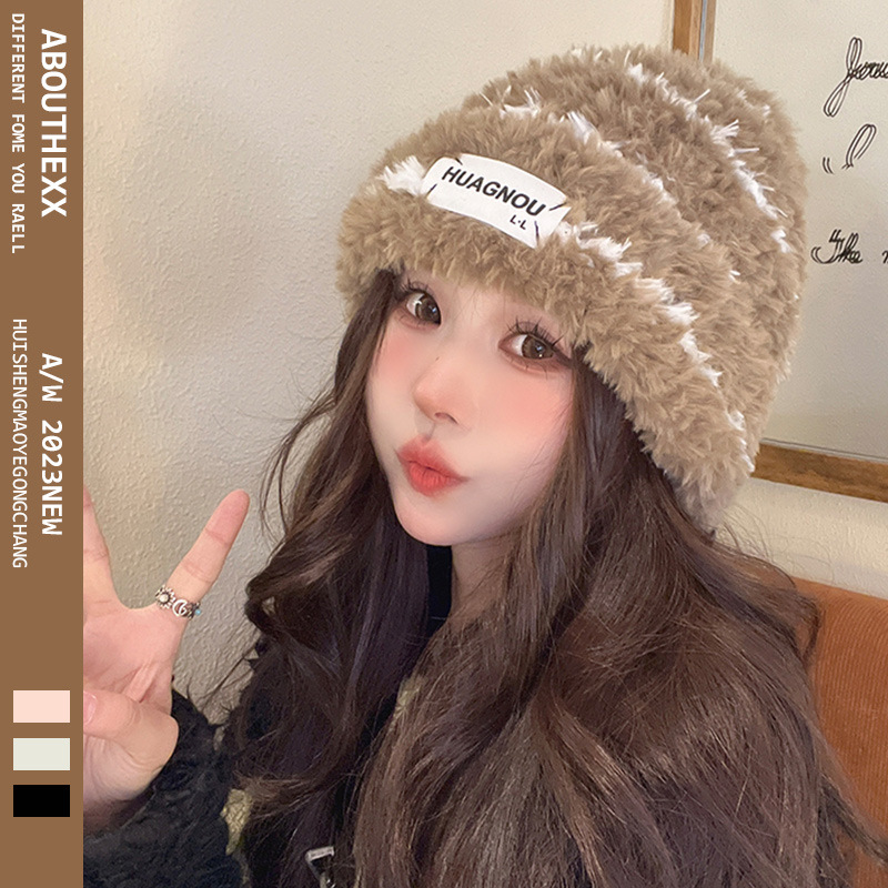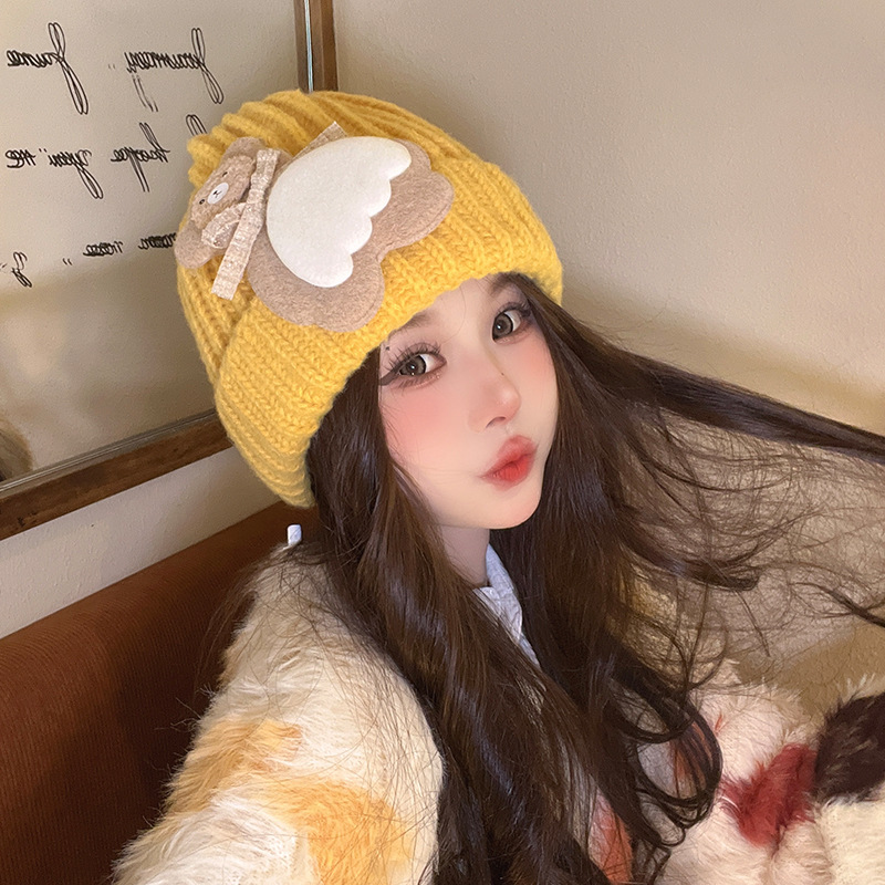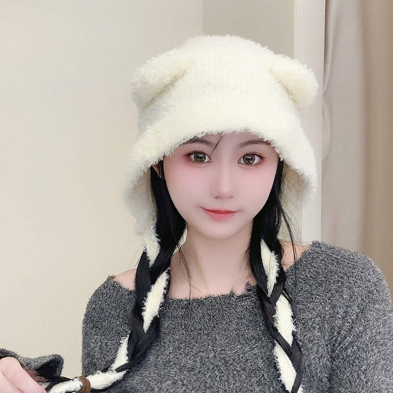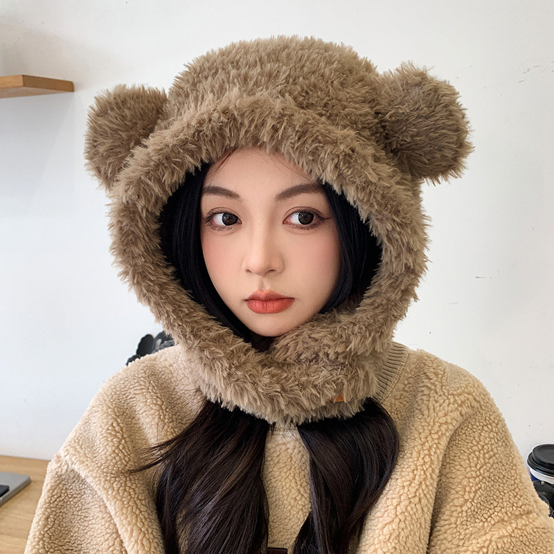 帽子の女性2023新型秋冬熊のぬいぐるみ耳のニット帽