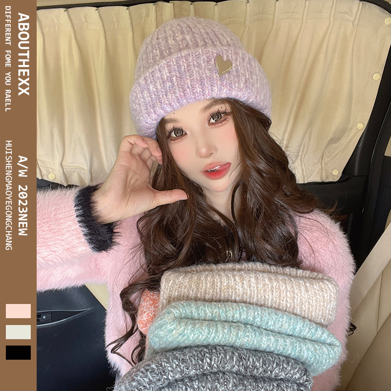 日系ネット赤愛心帽子供秋冬耳保護保温毛糸帽顔小韓版百合ニット帽冷帽